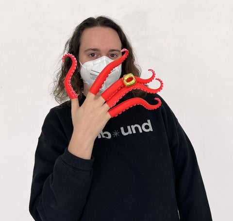 Kate, Director of Design: Flick was a product that had been in conceptual and developmental gestation for some time, and by the time we were ready to start birthing Flick, I went on parental leave with my own new baby. This led to us hiring the brilliant designer, Claire Fogarty, to fill in for me for a few months this summer. Of the many memorable things she contributed to the team, the packaging for Flick was one of the most beautiful. Every new product comes with its own set of challenges to conquer when it comes to packaging. It was important to us that Flick be size-inclusive and have the ability to fit as many people as possible, so the challenge was to create fun and functional packaging that could accommodate Flick's various ring bands and the tools used to change it out. This was accomplished with a sleek pull-out tray displaying all the ring bands that (as we hope with all Unbound packaging) could be proudly showcased on a nightstand. The cute illustrations didn’t hurt either. So thank you, Claire, for building Flick's forever home!
