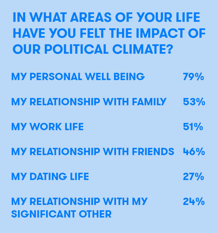 So we asked you: what's changed for you since the election and how are you doing now? We also left a small field where respondents could tell us in their own words what's on their mind as we approach the one year anniversary. You'll see those quotes throughout this piece as well. We learned that many of our relationships have changed- even our own personal well being has changed. We also saw that some of our habits in the bedroom are remaining the same. It may feel like the world is a news cycle away from spinning off its axis but maybe we're doing a little better than we're giving ourselves credit for.