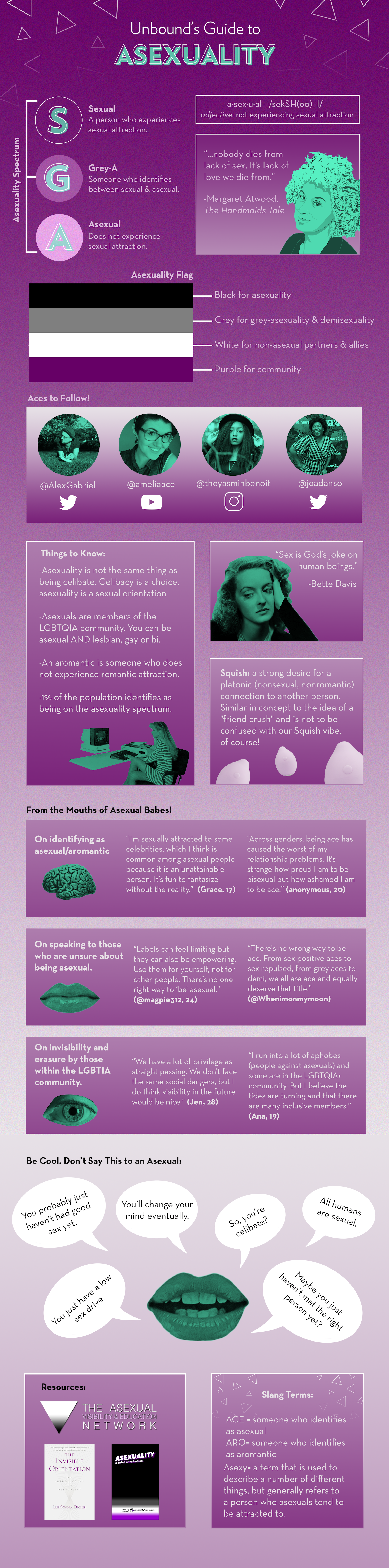 Often overlooked, asexuals are an important part of the LGBTQIA community. The spectrum of asexuality is wide and to be entirely candid, our gorg lil guide doesn't even begin to cover the rich and unique experiences of those who identify within the spectrum of asexuality. Here, we cover some high touch topics and (more importantly) hear from some aces on what it means to them to identify as asexual today.