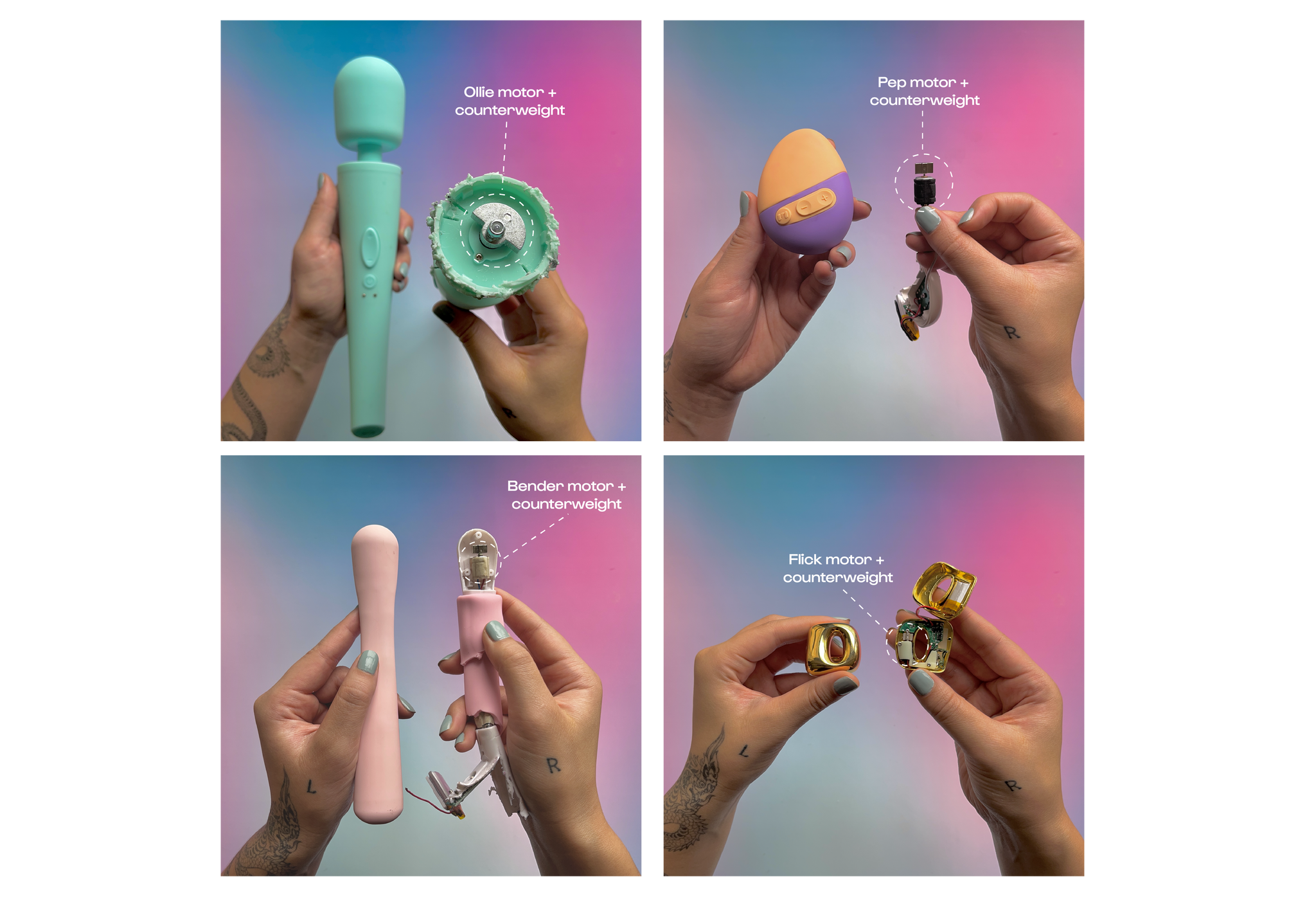 What this means, in reality, is that if you want a small, compact vibrator that is great for travel or can be designed as a wearable, like Pep or Flick, the counterweight and motor will also be compact to allow for that size, creating a more buzzy vibration.