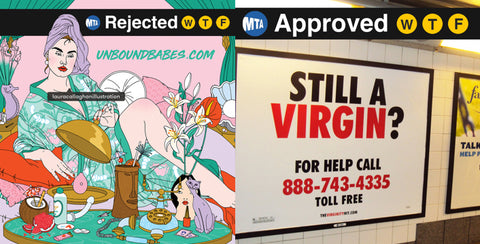 Long story short: last week Unbound submitted our first ad campaign to the MTA. And we were promptly rejected. Our ads were deemed "sexually offensive material" and therefore will not see the light of day (or the glaring fluorescent light of the B train). If you're already fired up, feel free to skip to the bottom because we need your help.