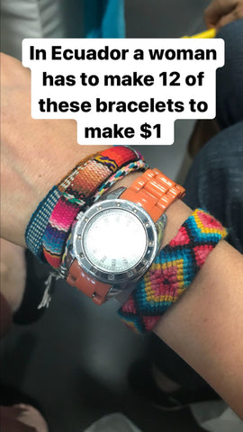 Remember those friendship bracelets that would take you literally 3 weeks to make at camp as a kid? In Ecuador, making jewelry is one of the ways refugees and women make money. However, in order to make ONE DOLLAR, they must make TWELVE of these bracelets.