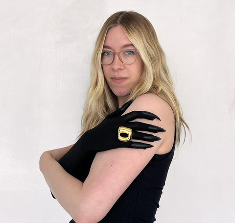Sarah Jayne, CCO: While we developed this ring, I had this constant vision of people running into each other “in the wild” and noticing that they were both wearing Flick. Sharing knowing glances, laughter, and connecting over the likeminded boldness of their choice to wear Flick out with them.