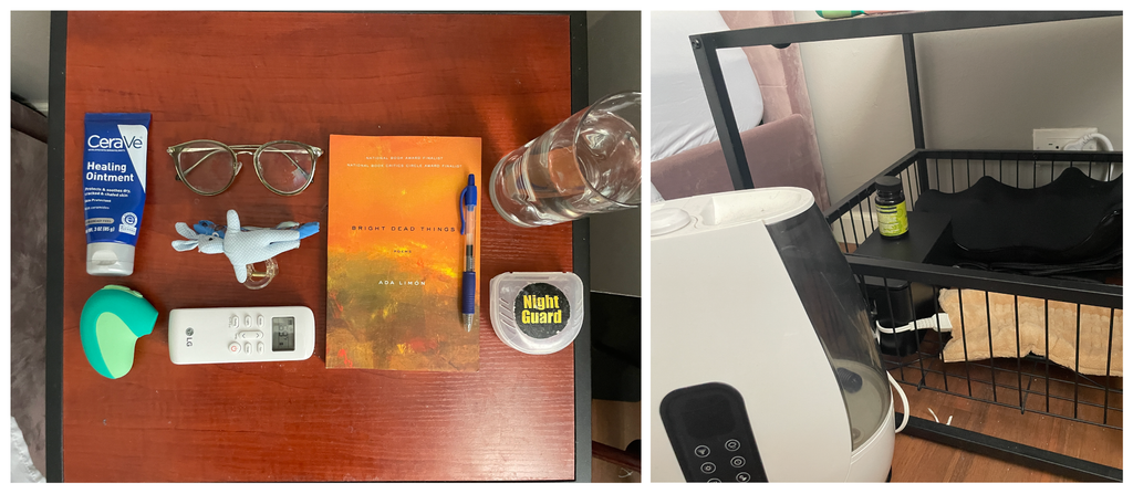 - Humidifier: My dry skin needs a constant cool mist raining down on it in during the night, otherwise I will wake up cracked as ever.