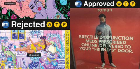 The MTA has decided that New York City is still not prepared to see womxn take control of our own narratives. Its decided that the pursuit of a healthy sexual wellbeing is reserved for those with a penis. It's nothing new–this is the message we've received our entire lives–whether it's adherence to dress codes, paying a luxury tax for tampons or pads, or even just riding the subway alongside (approved) ads for erectile dysfunction or breast implants. Don't get us wrong, these ads deserve to be there too, we're boner enthusiasts and affirm plastic surgery as a choice that people should be free to make without judgment. In fact, we were highly encouraged by seeing the rise of erectile dysfunction ads–maybe this would open a path for a company like us too. Alas, what is deemed acceptable, passable, or appropriate is different for some. The validation of progress and representation is not felt positively among all groups.